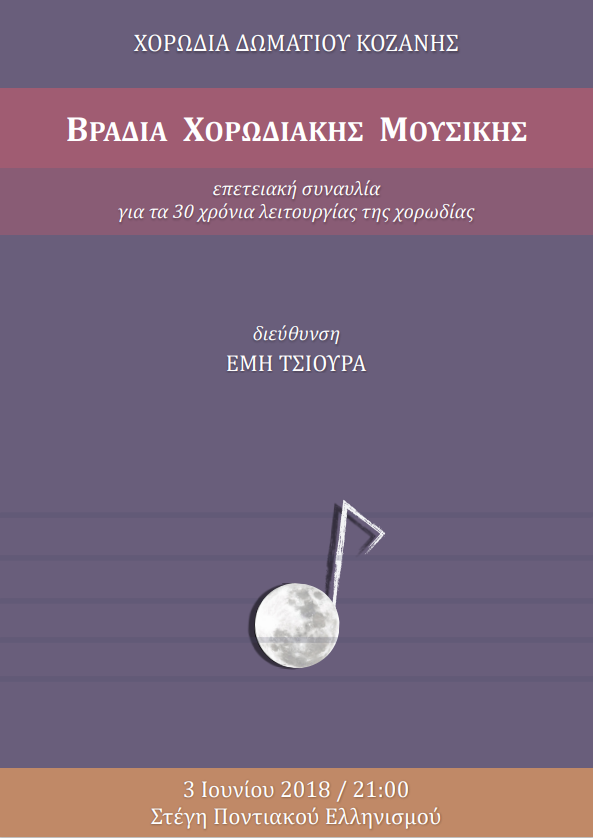 Επετειακή συναυλία για τα 30 χρόνια λειτουργίας της χορωδίας Δωματίου Κοζάνης στην Στέγη Ποντιακού Ελληνισμού