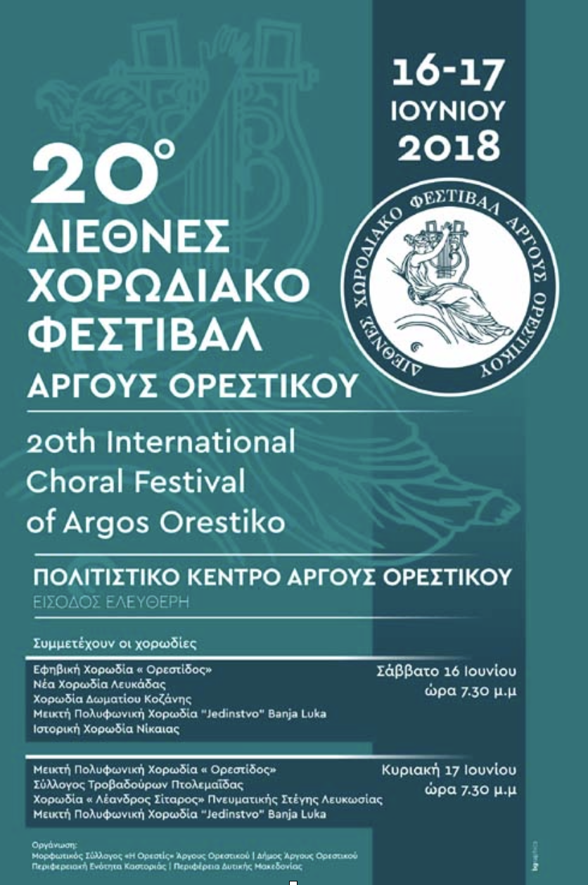 Συμμετοχή στο 20ο Διεθνές Χορωδιακό Φεστιβάλ Άργους Ορεστικού στο Πολιτιστικό κέντρο Άργους Ορεστικού